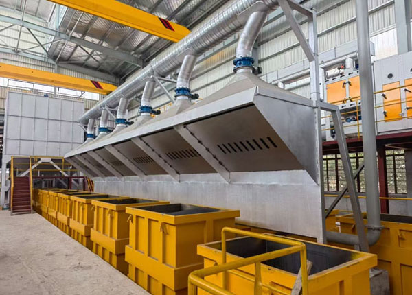 在建河南立德金屬材料科技有限公司3工位半自動(dòng)消失模生產(chǎn)線、該線配置先進(jìn)新型水浴滾筒、…